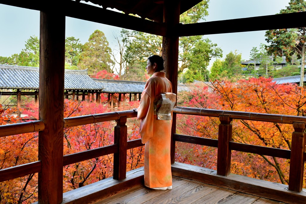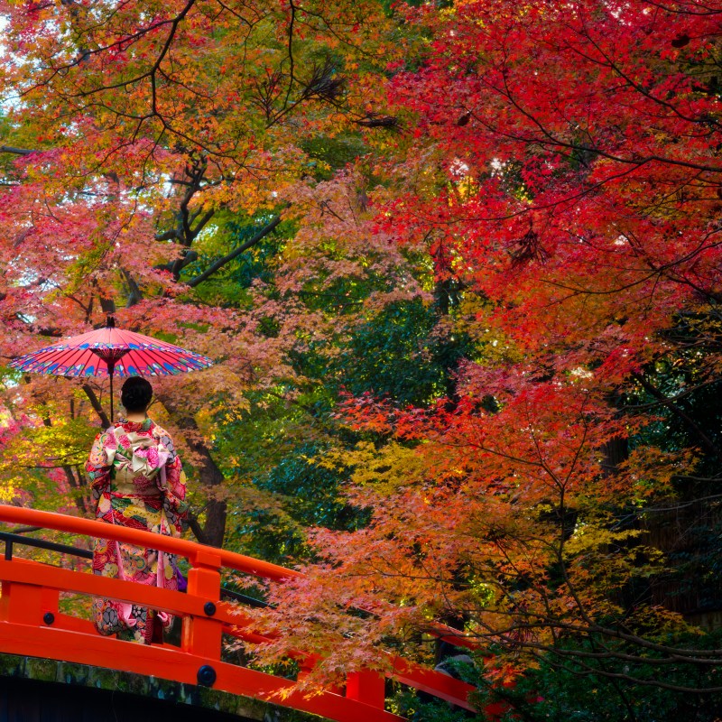 Expect vibrant red and yellow leaves from the maple and ginkgo trees, respectively. There’s also the Arashiyama Bamboo Grove, which warms with golden autumn hues each year. Many temples are also lined with maple trees that turn bright red, including Komyo-Ji Temple and Kodaji Temple.