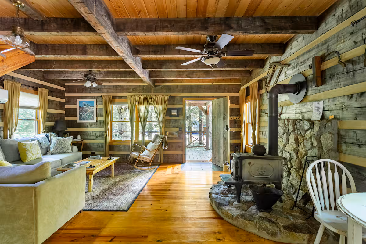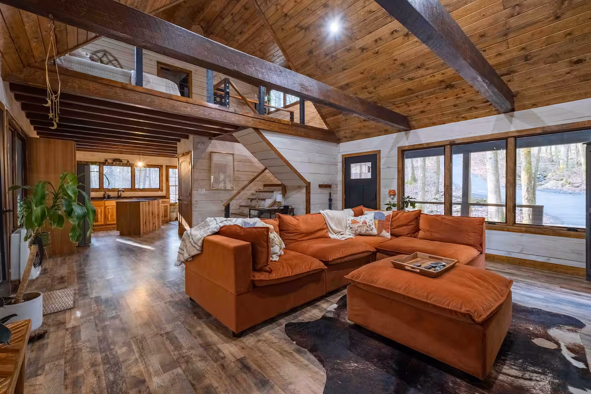 Who knew Tennessee specialized in tiny homes nestled in the forest? Just outside Nashville waits this Pegram pick, giving you a remote escape that includes a creek trickling through the property. Inside, you’ll find a unique balance between handcrafted wooden pieces and more luxurious, leather furniture—I think that makes this great for anyone who isn’t sure if they want to go all-in on the rustic elements.