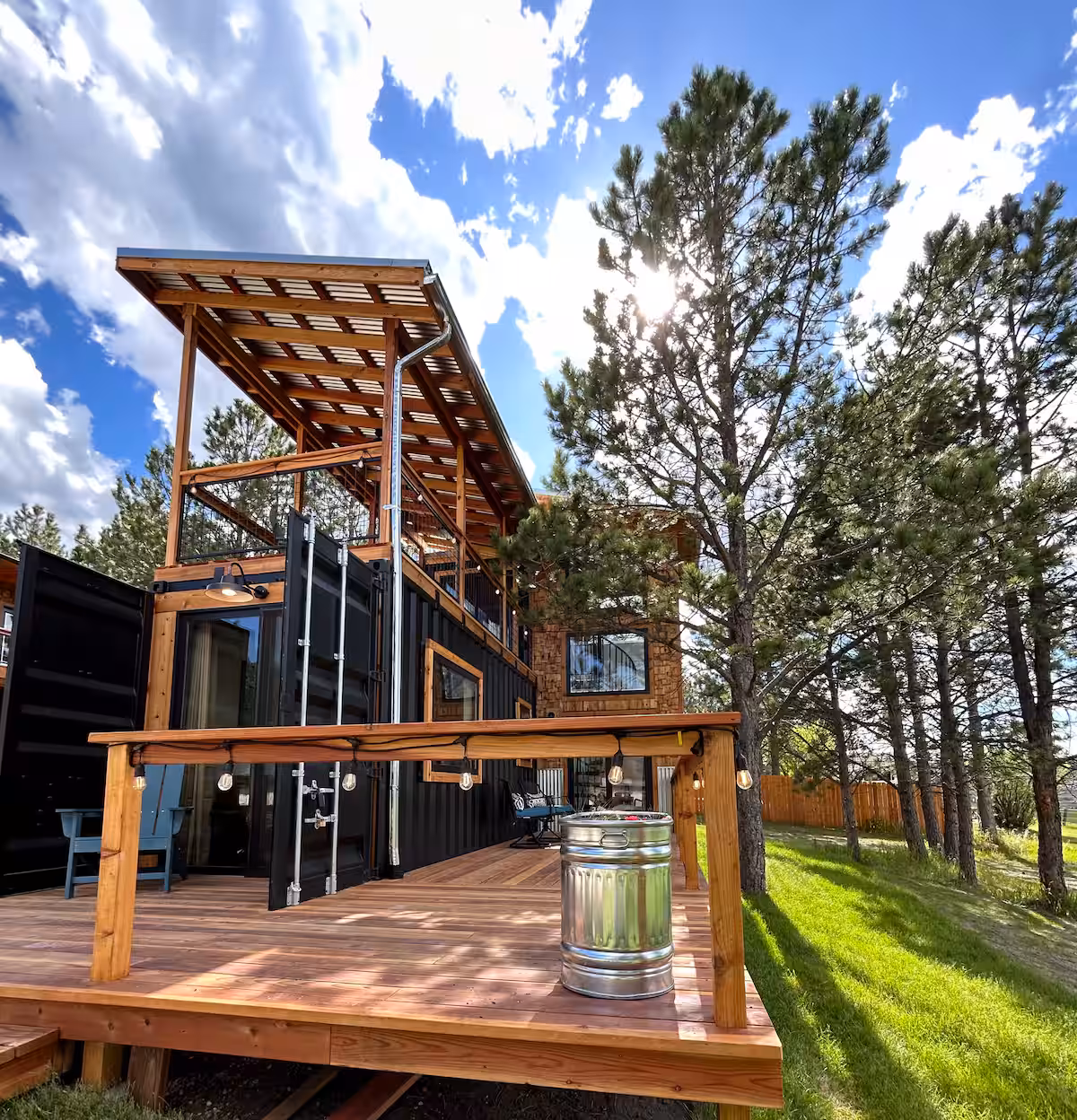 Do you enjoy unique, bespoke stays? Check out this stacked shipping container house that comes with a large covered porch on the second floor. Built in 2024, it’s modern, cozy, and surprisingly large. Along with the large upstairs porch, there’s also an outdoor fire pit where you can observe the wildlife, and a separate barbecue area. Nearby, you can rent ATVs and kayaks, or simply head into Custer to explore its quaint downtown.
