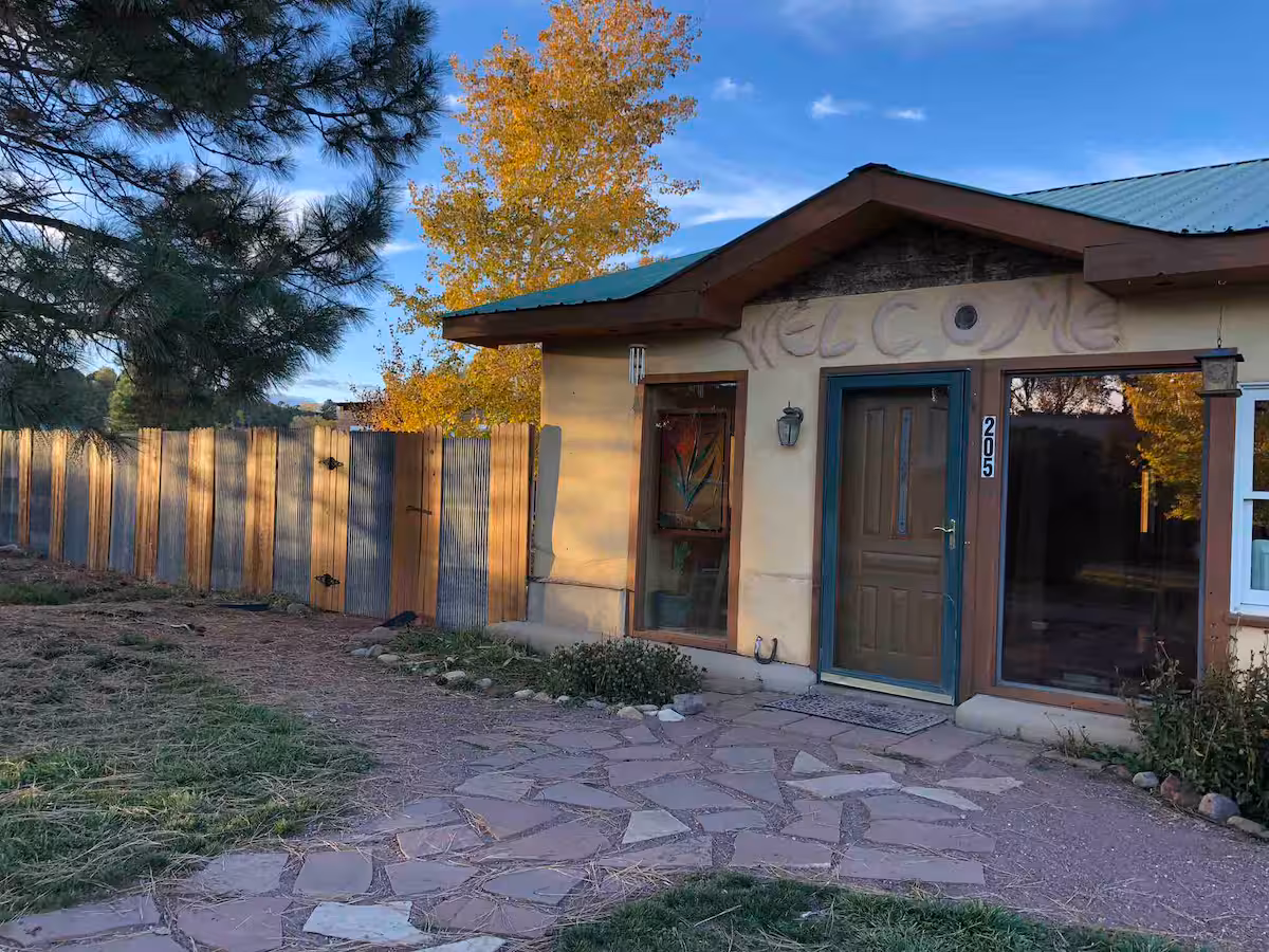 The Strawbale Cottage is built with thick, adobe walls, letting you shack up in an earthen-style home… without compromising on functionality or décor. The cottage has vaulted ceilings and heated floors, for example, along with a large walk-in shower. All the rustic Durango vibes, just with added sustainability features.
