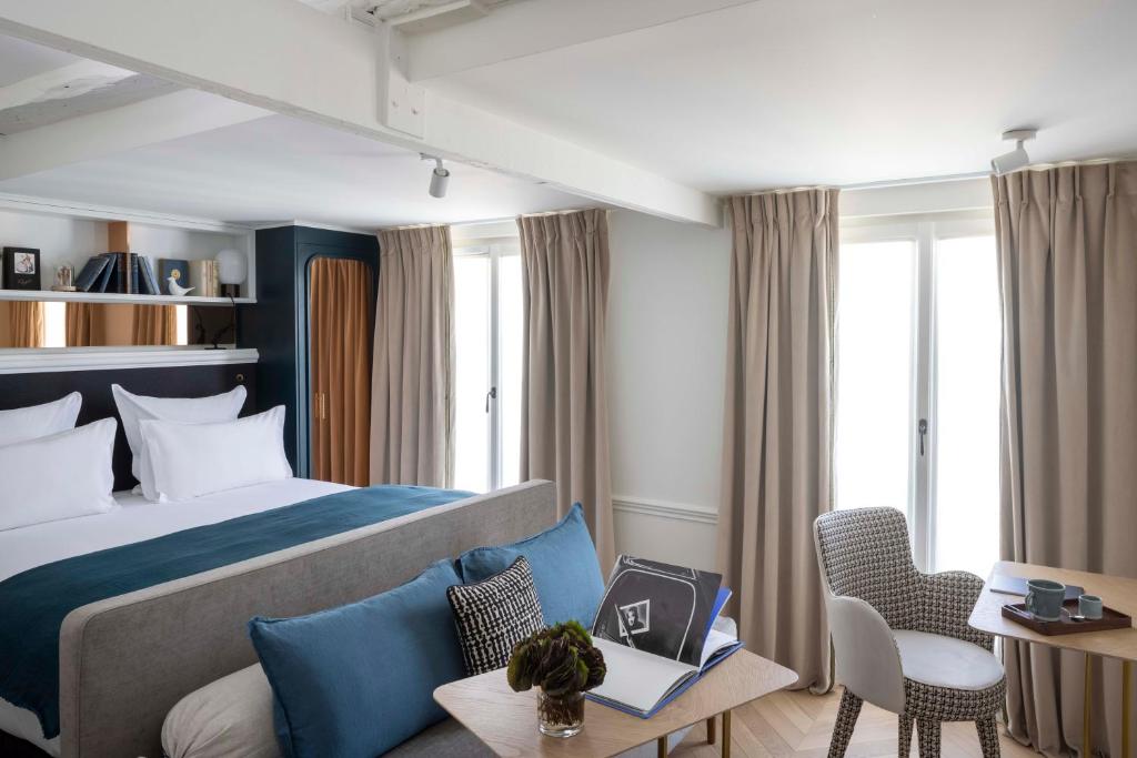 This five-star stay has everything you could possibly need from a boutique hotel in Paris. There’s a restaurant, bar, spa, and cozy lounge. But the real coup is the large rooms that offer a respite from the sound and rush of the city. Guests have lauded the hotel’s quality of sleep, along with their moody design. (This property was formerly known as Sinner Paris.)