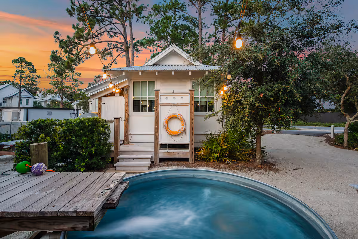 This oceanfront townhouse puts you right in the Port St. Joe magic. The beach is only 40 feet from the house, which comes with plenty of beach gear, like chairs and carts. Plus, it’s dog-friendly. Like the property in Santa Rosa Beach, the backyard pool is actually a soaking tub—which should get the job done on hot days. Book now.