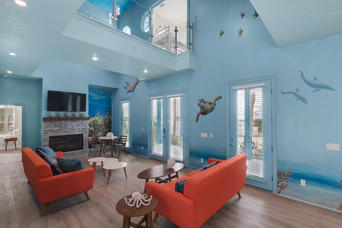 Not all beachfront rentals in Florida with a private pool deliver on Instagrammability, but this little cottage packs a (visual) punch. Not only is there a private pool in the backyard and beach access a few blocks away, but there’s also a grill and outdoor game area. Like I mentioned, the grounds are also very photogenic. From the lush gardens in the back to the home’s colorful exterior, it’s a treat for the eyes. Book now.