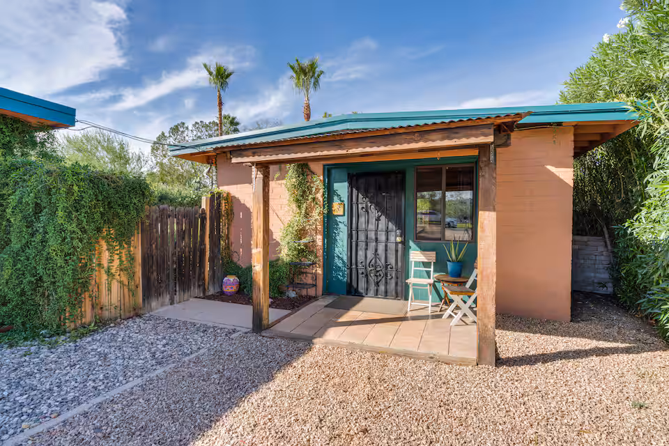 This Guest Favorite is a bungalow that sleeps up to two guests. It showcases Tucson’s Southwestern, Sonoran style of décor. The kitchen has colorful, Spanish-style tilework, while some older wooden features have been restored. Still, the property has been updated with modern features, giving you the best of both worlds. Book now.