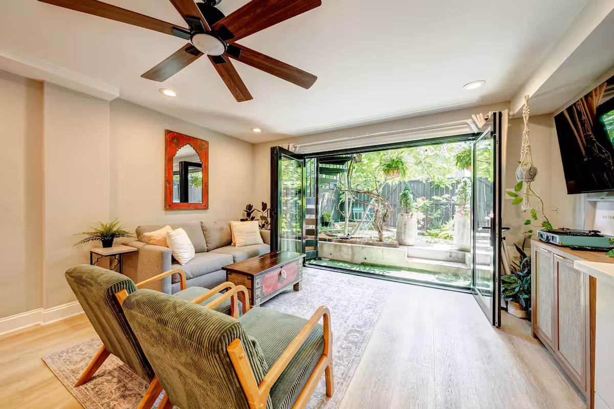 This stylish one-bedroom rental is a treat for travelers who are bored with the same old décor. The walls are decked out with art, while the furniture has tons of personality—without being tacky or over-the-top. Even the backyard has a bit of flair. Plus it’s only a few blocks away from Logan Circle.