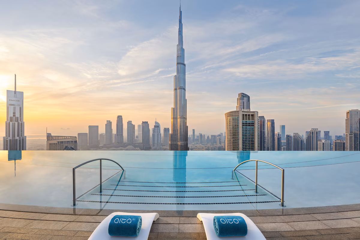Want front-row views of the Burj Khalifa? Address Sky View, Downtown Dubai, will do you one better. Views of the Burj Khalifa from a lush infinity pool located on the 54th floor. There’s even a private shopping mall on-site.