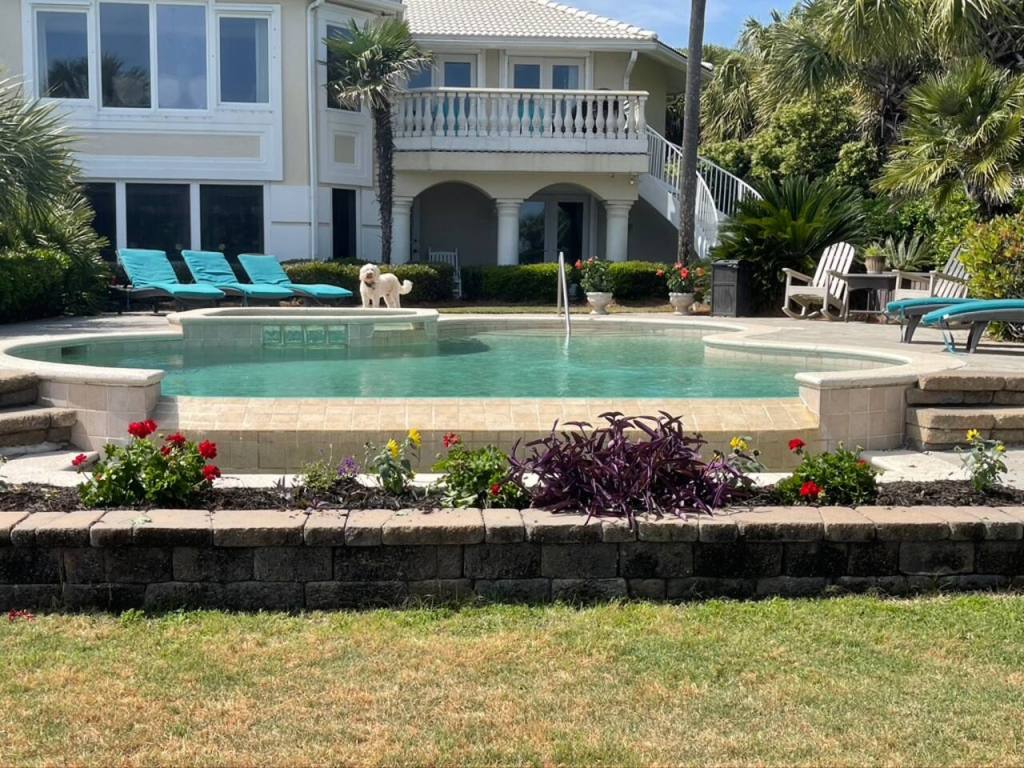 This rental home was recently overhauled, meaning you can expect a fully refreshed interior in this classic beach cottage. The beach is just across the street, while the shared pool is directly outside the rental. Plus, the unit comes with beach supplies like a buggy, cooler, beach chairs, and towels. The garage has room for three cars.