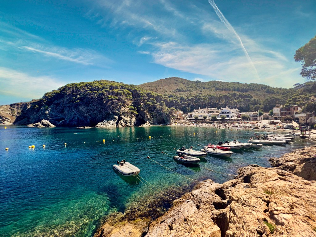 Cala Sa Tuna is one of those famous beaches that rim Begur. It’s a pebbled beach that’s hidden within dramatic cliffs. However, there’s a bit of infrastructure that makes it easy to visit, including paths and even a little chiringuito. That’s a beach shack that sells food and drinks. If you visit Begur, don’t miss Cala Sa Tuna.