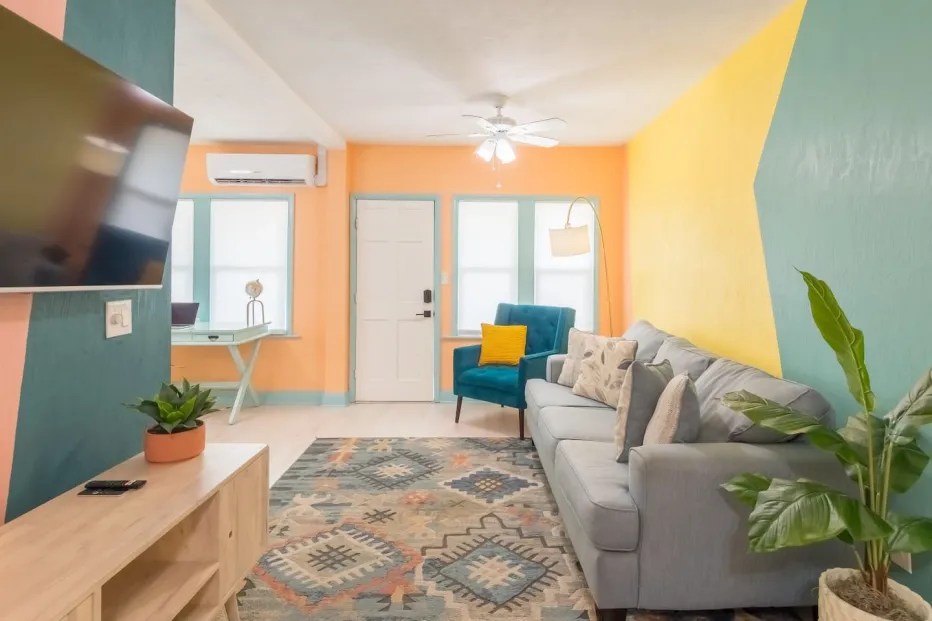 Just a short walk from Ocean Center and the beach, this Daytona Beach rental is great for small friend groups and families. The interior is eclectically decorated, from its colors to its furniture—but not so much that it will alienate travelers. Just know that it’s a one-bedroom with a pullout couch and blow-up mattress that will let you sleep five.