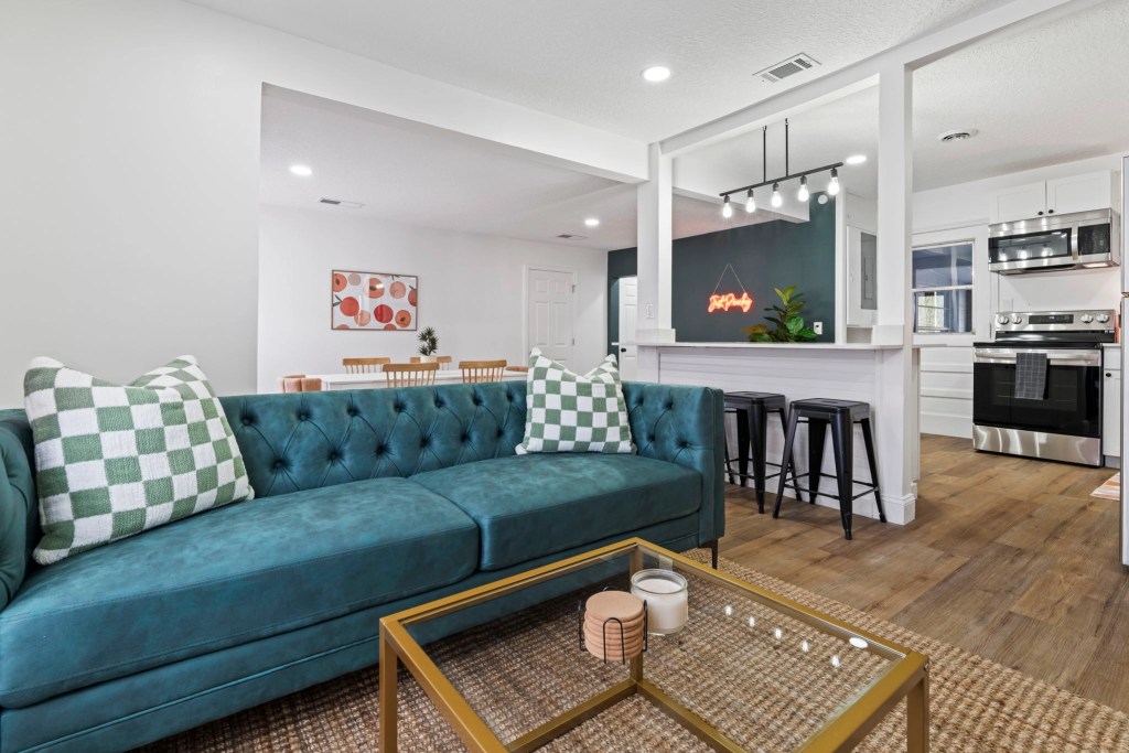 If you want a little more space in Cocoa Beach, book this one-bedroom that has a pull-out couch. The décor is bright and boho-chic, just like many other Whimstay deals on this list. The real magic with this rental is that you’re only a few steps from the sand, giving you non-stop beach access.