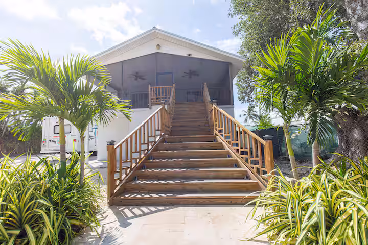 This two-bedroom cottage, a classic that dates back to the 1950s, comes with ramp access. You’ll be in the heart of a historic fishing village, and you can still go pick out your catch that you want for dinner that night. If you want a quaint, charming stay in the Keys, Conch Key is hard to beat.