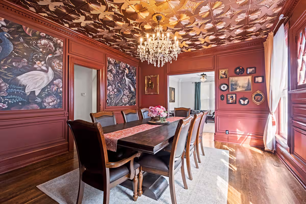 This luxury rental unit sleeps six in three bedrooms. It’s a fully renovated historic Victorian mansion near KC’s famous Hyde Park. There’s a fenced yard out back, along with a bespoke coffee bar inside for cozy mornings with a brew in hand. This unit is also managed by Cozy In KC, the same company responsible for the first two historic lofts.