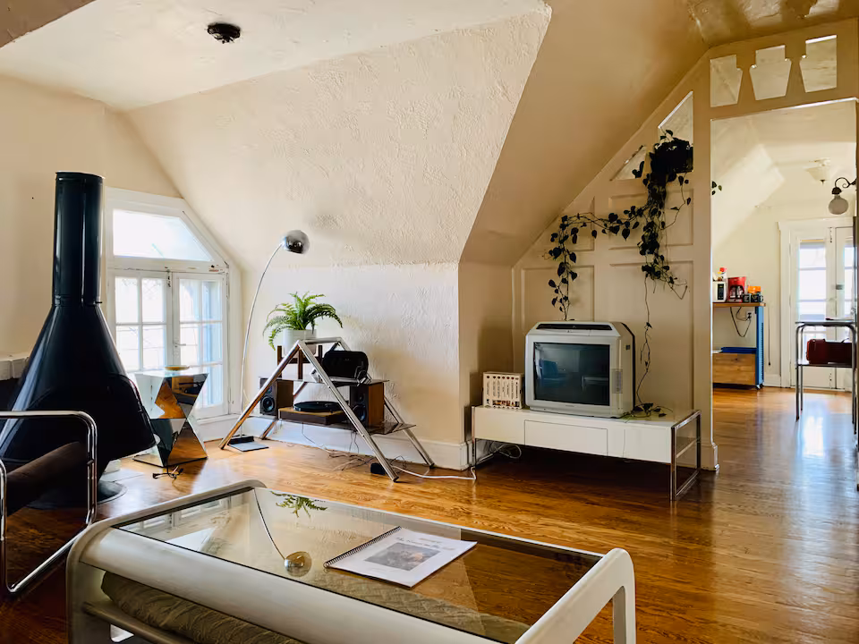 This shabby-chic penthouse is located in a historic 1890s home. There’s a gorgeous view of the skyline from the window, along with streetcar access outside. You’ve got a great balance between excellent bars and galleries in Crossroads, along with other downtown adventures, like Convention Center.