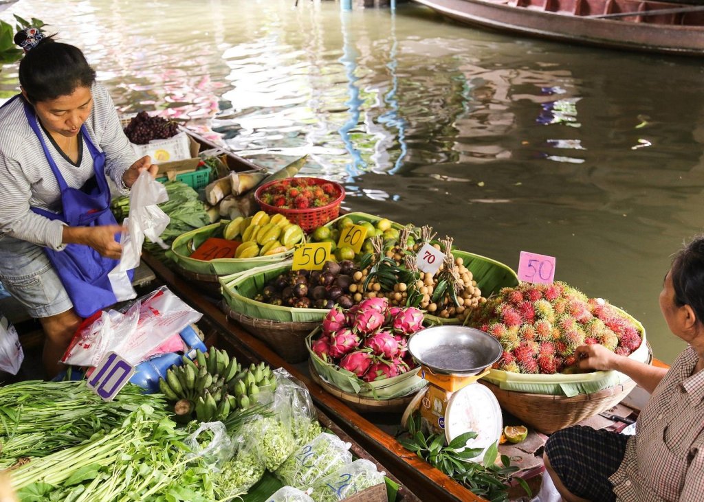 This tour includes hotel pickup and two floating market experiences. First, you’ll head to Khlong Lat Mayom floating market inside Bangkok. Then, you’ll head outside the city to the larger and more famous Taling Chan Floating Market. There, you’ll also get to sample local favorites from the food market.