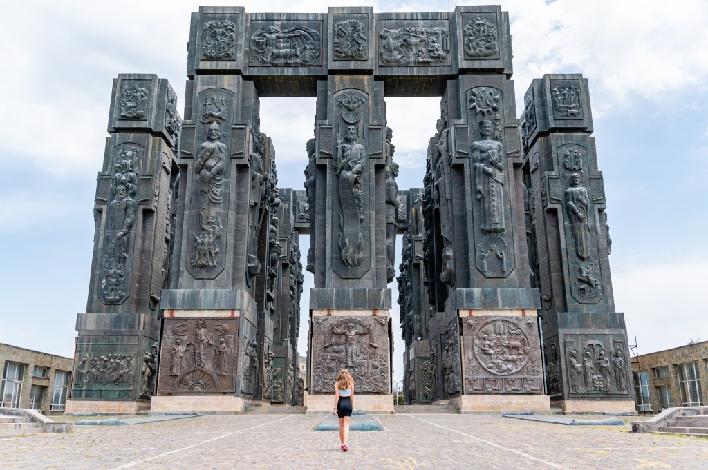 - Purpose: A sculpture from a local artist that was built to celebrate Georgia’s 1,500th anniversary. The figure is a woman in Georgian national dress, which is built entirely of aluminum.
