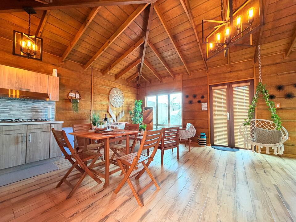 This gorgeous studio cottage has a large king-sized bed and a climate-controlled pool outside, making it perfect for romantic escapes. There’s also a large outdoor grilling area and sitting area where you can enjoy panoramic views of the mountains. You can also choose packages upon arrival that come with balloons, champagne, and/or rose petals.