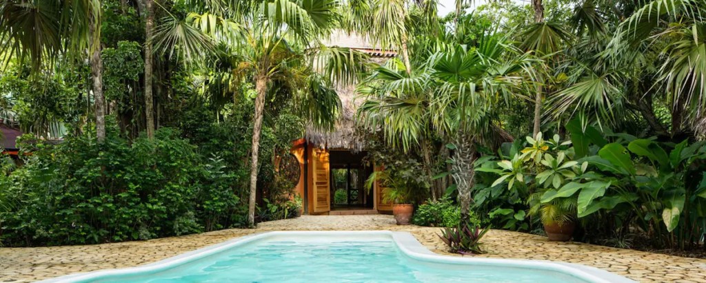 - Coolest features and amenities: Multiple outdoor pools with state-of-the-art lighting, plenty of outdoor spaces to hang out, private beach access, and forested jungle surroundings