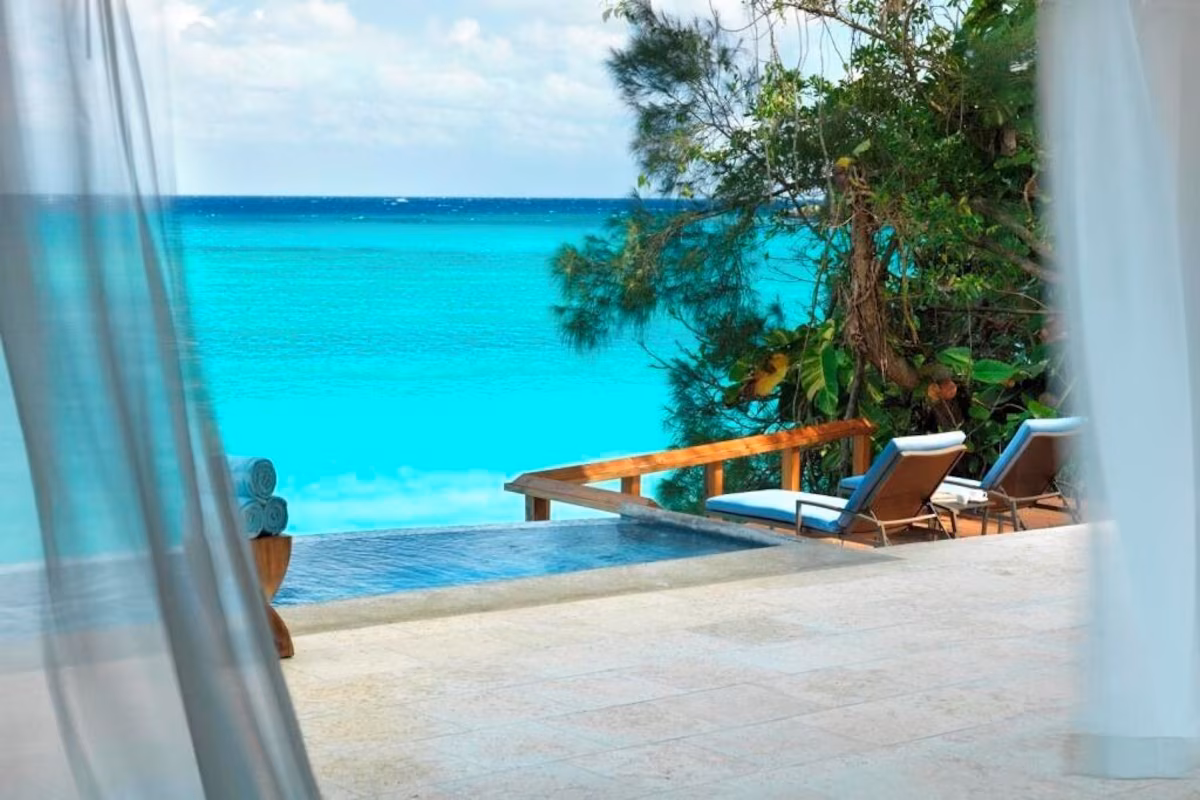 - Coolest features and amenities: Private white-sand beach, crystal-clear swimming holes, spa treatments overlooking the water, open-air pavilions for dining and entertainment, and live music shows at cocktail hour