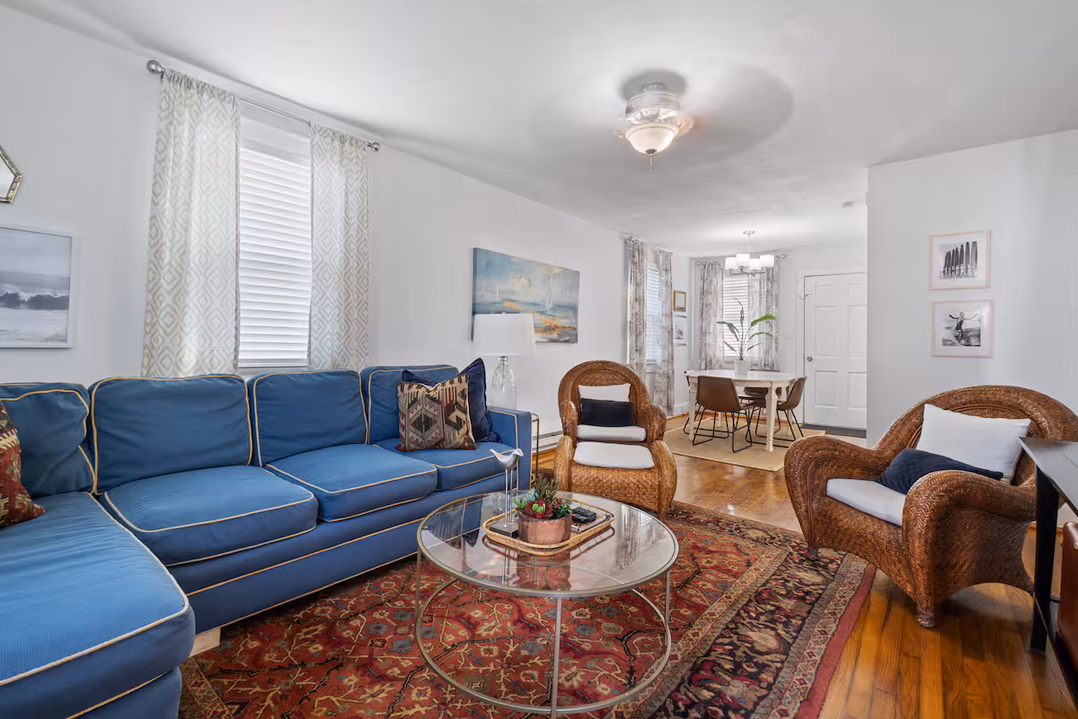 - Great for: Those who love a classic beach vacation, similar to the unit above. This is a 1910 historic home that has been fully restored with modern décor and amenities. The shared areas are all large and designed to comfortably host up to six guests, making this ideal for families and groups.