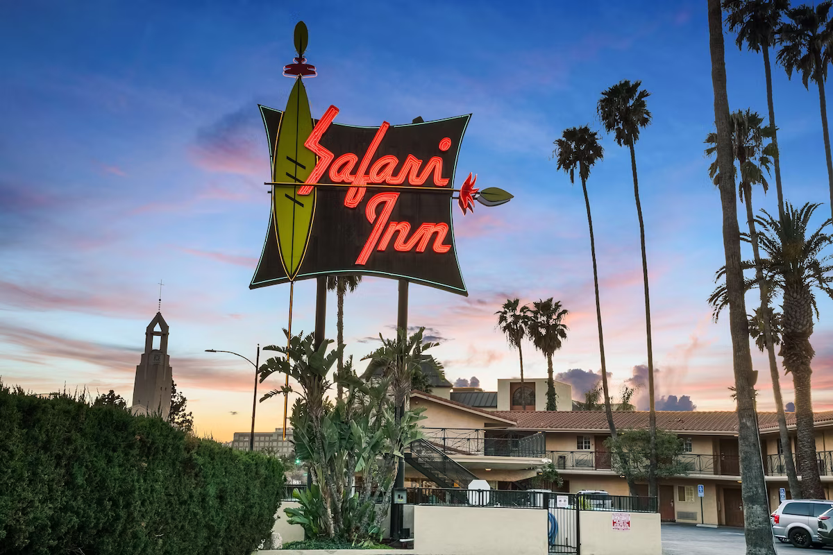 I first heard about Safari Inn thanks to its proximity to Universal Studios Hollywood. It’s a sleeper hit for families heading to the amusement park. Location aside, Safari Inn is also affordable, pet-friendly, and has a year-round heated pool. Simple, sweet, and just a touch of retro.
