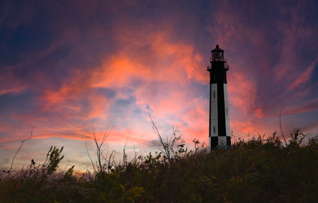 On the grounds of the Fort Story military base (close to First Landing State Park), you can find the Cape Henry Lighthouse. The Cape Henry Lighthouse is built on the site of the first landing, and is also the very first public works commissioned and paid for by the US government when it was built in 1792. A second lighthouse (with black and white stripes) was built next to the original in 1881. Both are now designated as National Historic Landmarks.