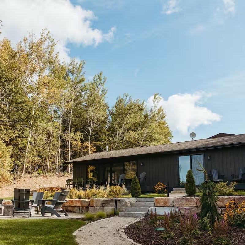 This property opens right onto Lake Michigan. The backyard is large and includes a private hot tub, sitting area, and kayaks. (It’s also dog-friendly.) The cabin has three bedrooms that sleep up to six guests. Though it’s on the smaller side, it’s been fully renovated with modern finishes and features.