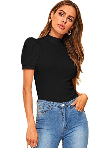- Floerns Women's Solid Tee Mock Neck Blouse