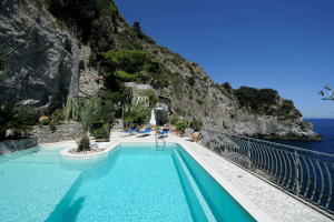 For waterfront privacy and luxury in one of Italy’s most famous vacation spots, look no further than Villa Azurra. This breathtaking property is located in a hamlet halfway between Praiano and Amalfi. You will have to descend 230 steps from the main road to get to the villa, but the walk is well worth it. A further 100 steps down a private stairway brings visitors directly to the water.