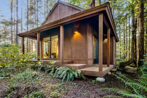 How’s this for something off the beaten path? This cozy studio is nestled in the middle of a coastal redwood grove. And when we say “cozy,” we mean it. This space clocks in at just 384 square feet, but its owners have made good use of it.