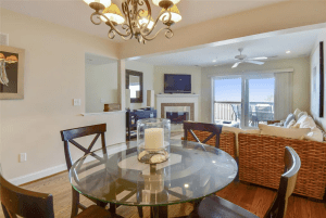 This condo is a part of Sea Colony, a private resort whose history goes back more than 50 years. Guests get access to resort amenities, such as pools (indoor and outdoor), a fitness center, and tennis courts. By virtue of being on the fifth floor, the views are stunning. It has three bedrooms, accommodating up to eight guests. These consist of a master suite, a room with a king-size bed, and a kids’ room with a full and two single beds. Light floods into the spacious common room, brightening up guests’ mornings and encouraging them to get out and get the most out of their beach vacation.
