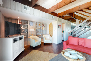 This townhouse in the Tower Shores neighborhood is just north of the center of town, offering guests a quieter environment and easier access to Delaware Seashore State Park. It’s just a mile and a half away from Coin Beach, where visitors still comb the sands for coins lost in a 1785 shipwreck. Though there’s only one restaurant within walking distance, it’s a good one well-loved by locals: Matt’s Fish Camp. The house has an enclosed deck with an outdoor private shower for getting clean after a day on the beach. There’s no need to bring your own beach equipment as the owners have stocked up for you. For indoor play, games and puzzles are provided. This house is a good bargain for a family (or two) ready to have fun on the beach.