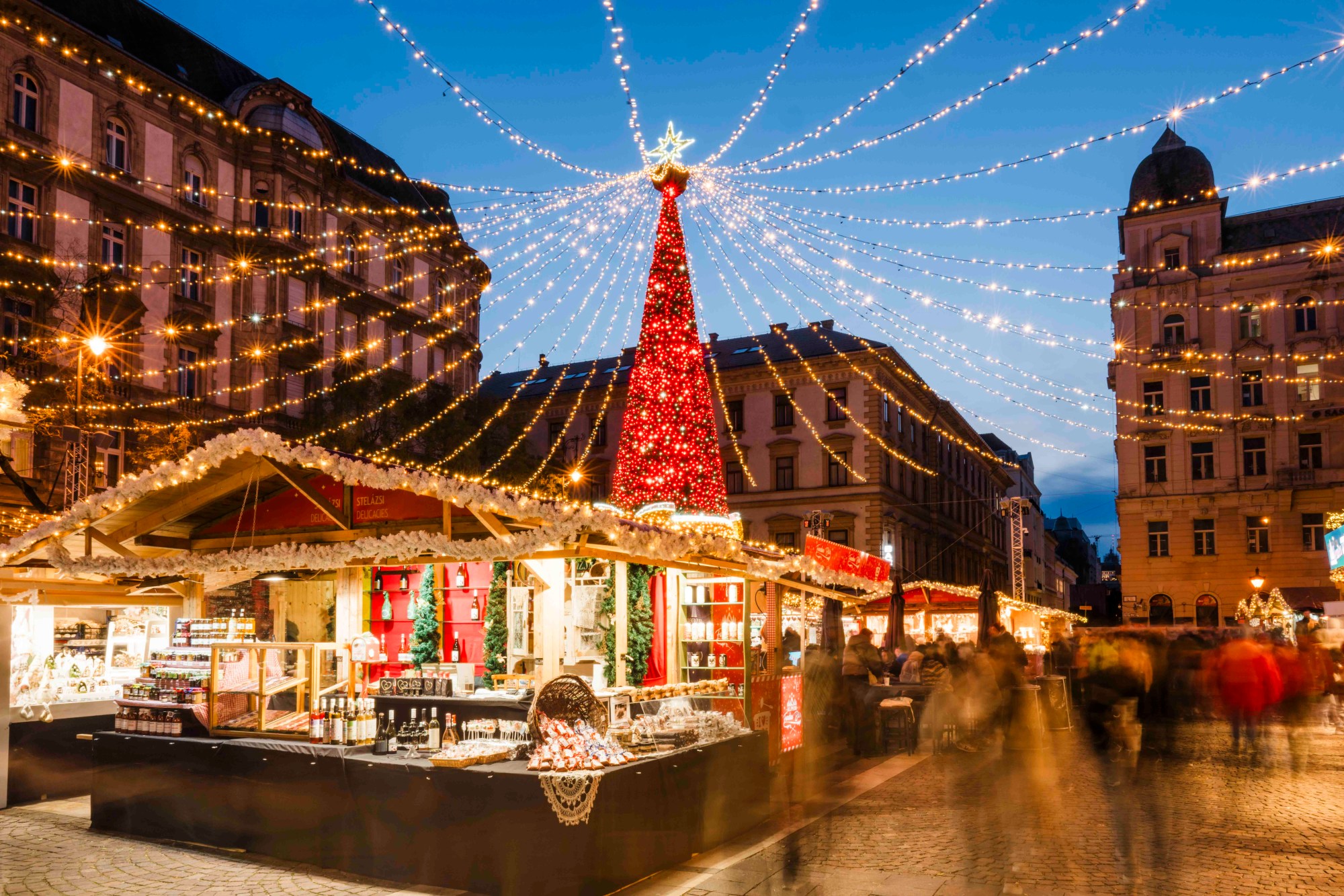 Christmas tree at dusk, Christmas market in the Hungarian capital, Budapest (Getty)