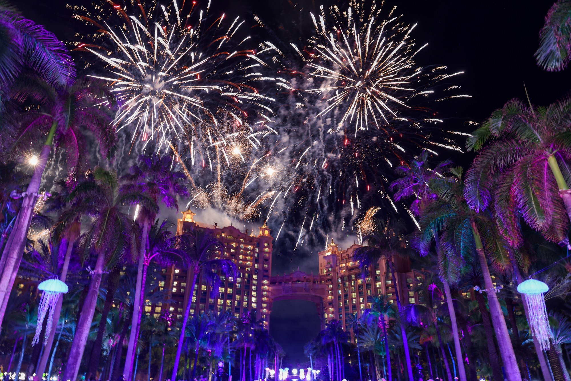 NASSAU, BAHAMAS - DECEMBER 31: General view of the fireworks show during New Year's Eve Party Like A Royal at Atlantis Paradise Island on December 31, 2023 in Nassau, Bahamas. (Photo by Alexander Tamargo/Getty Images for Atlantis Paradise Island)