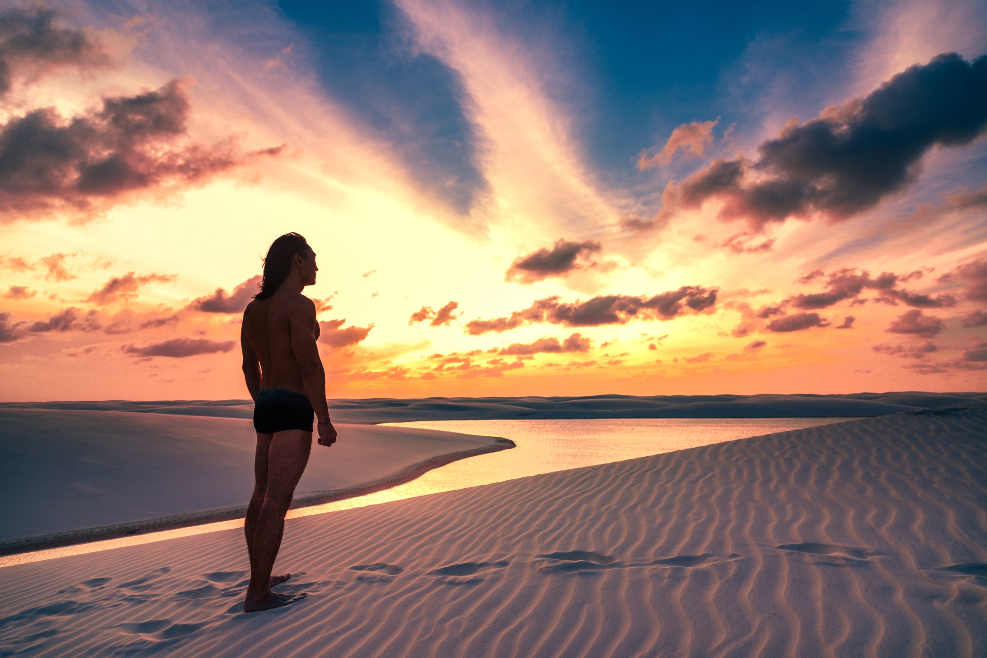 Man on the sands of Lençois Maranhenses watching the sunset (Getty)