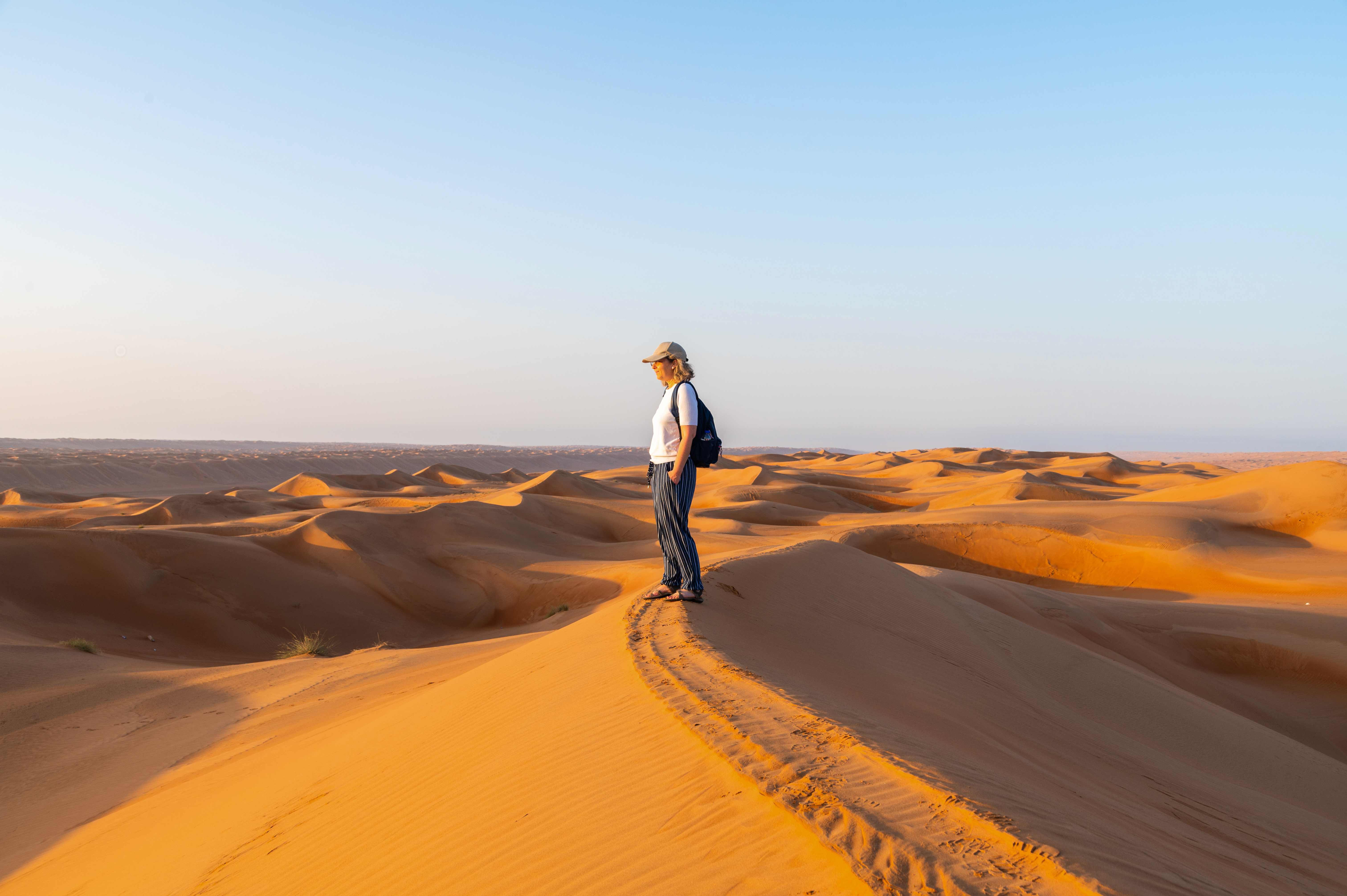 This is a photo of a woman in the Sharqiya Sands (formerly and most commonly known as Wahiba sands), Oman (Getty)